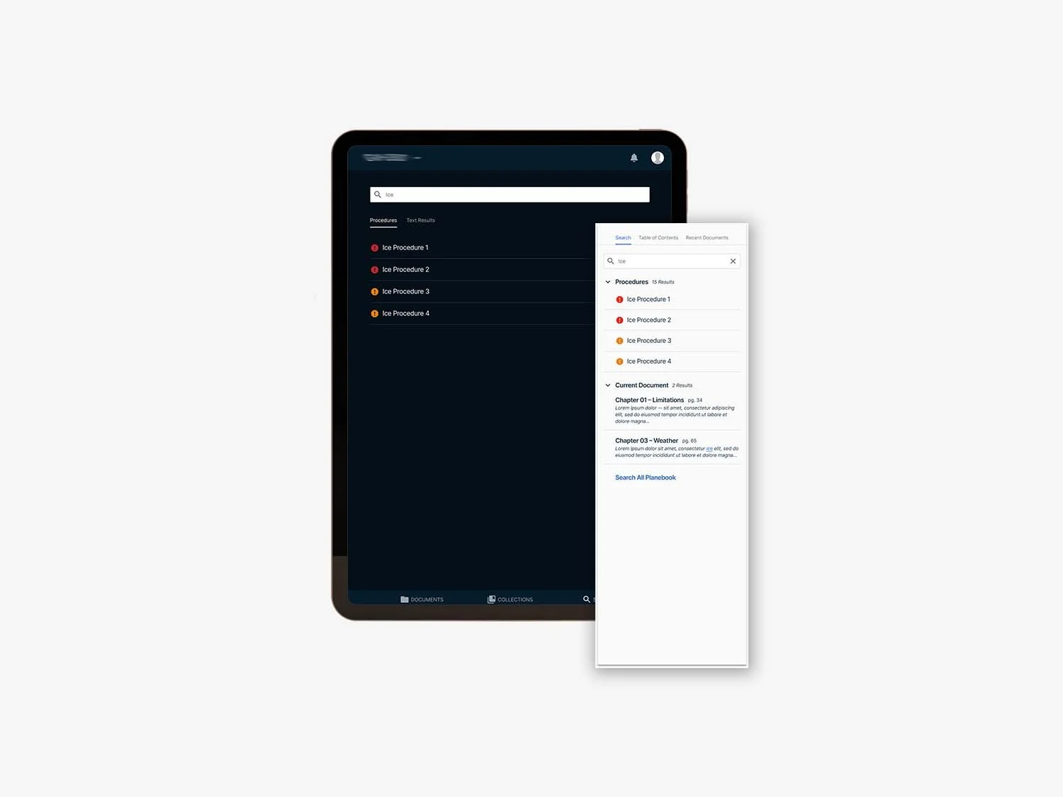 App-wide and in-document search, showing emergency procedures pinned to the top in order of most critical to least critical