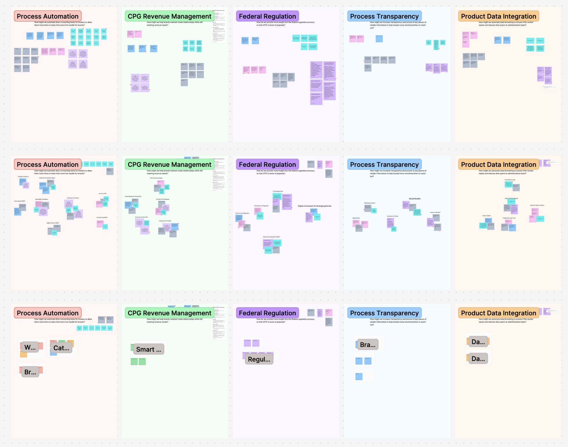 Screenshot of a full-team Diverge/Converge workshop with the goal to get to “solution” level for top opportunities