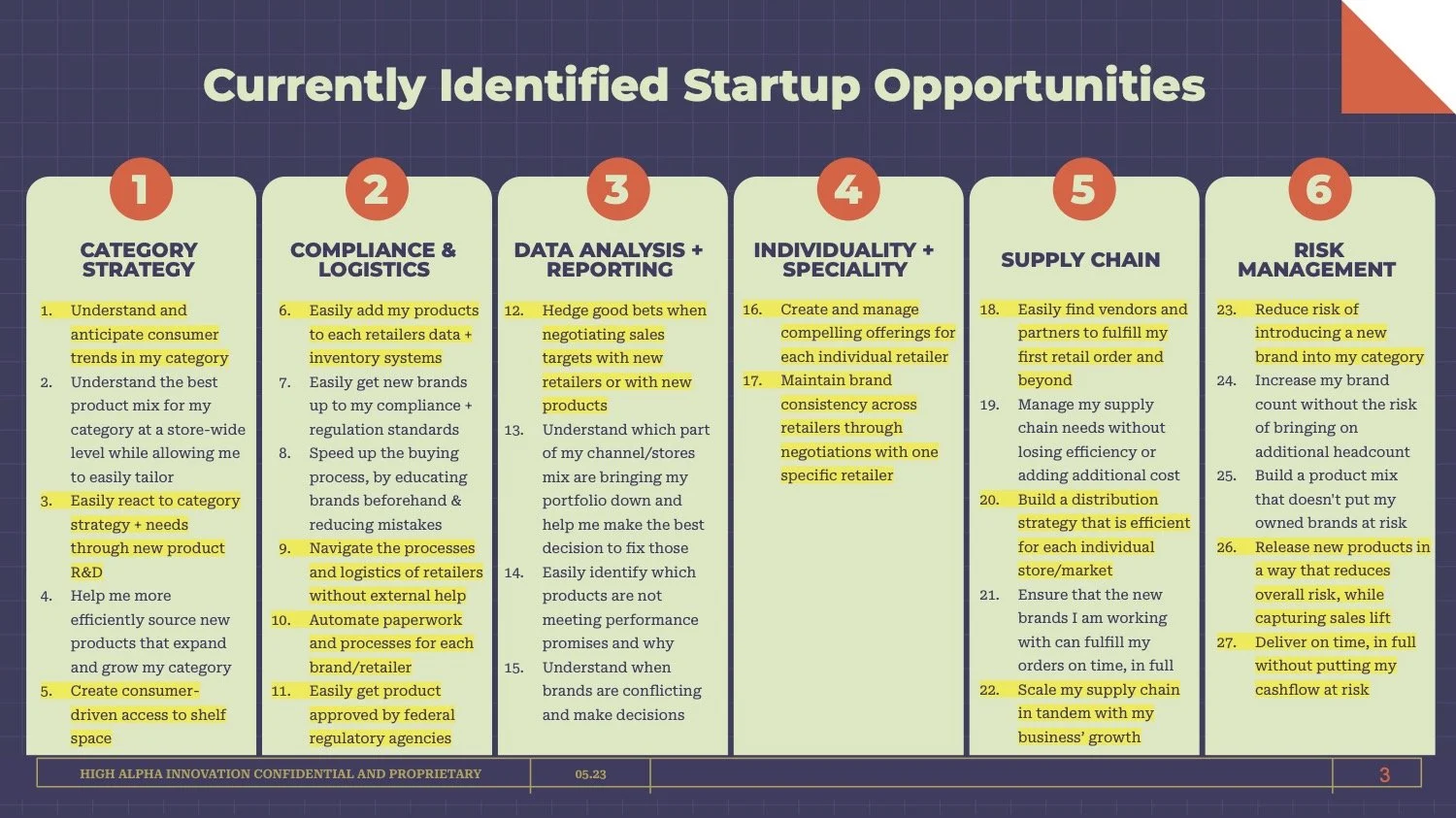 A venture studio in NWA needed a way to quickly discover, evaluate, and test a variety of opportunities within key areas of the retail value chain as potential startup concepts.